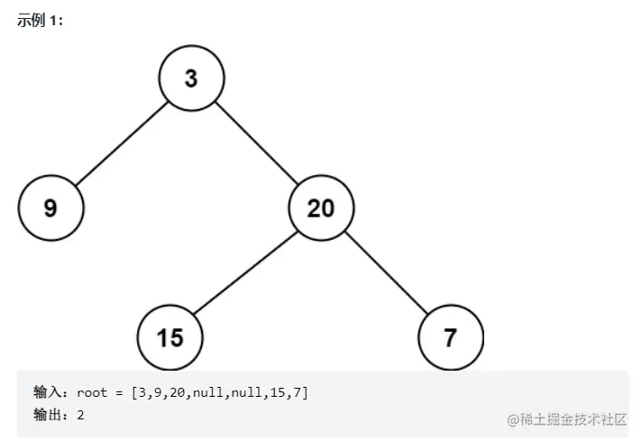 最小深度是从根节点到最近叶子节点的最短路径上的节点数量。