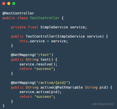 其中 TestController 和 SimpleService 两个类的内容也很简单,直接贴代码