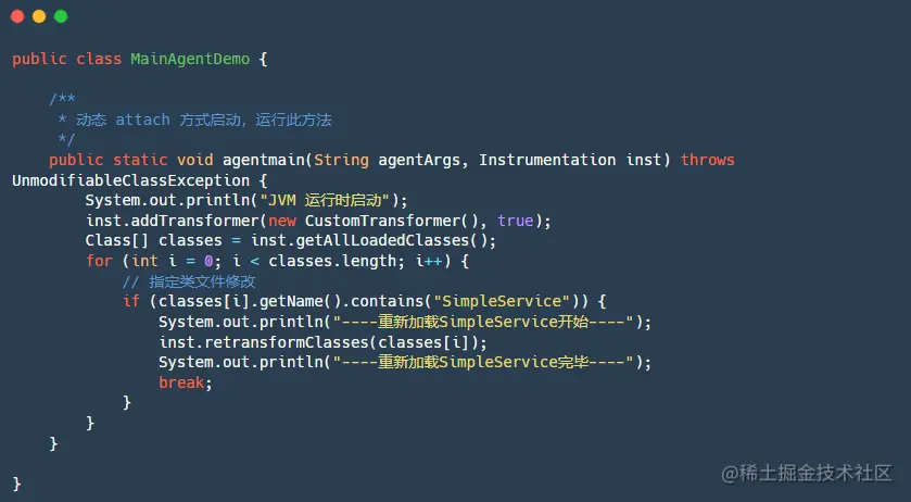 public static void agentmain(String agentArgs, Instrumentation inst);