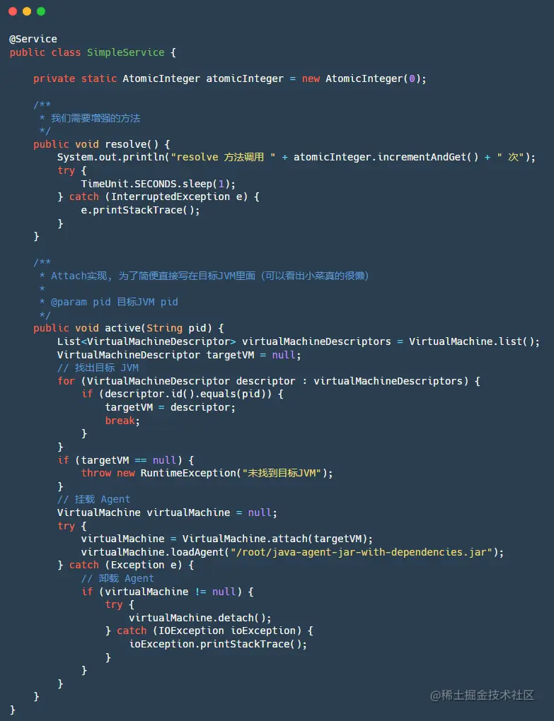 以下是简单的 Attach 代码实现: