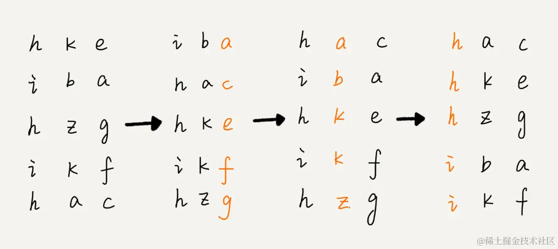 核心思想:对每一位进行桶排序或计数排序(保证最后一位有序后,在继续排序)