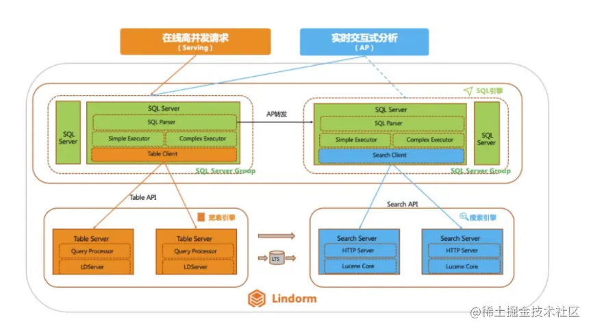 Lindorm宽表引擎在很早的时候就已经支持了SQL访问,相比使用API,SQL语言更加简单容易上手,深受广大Lindorm开发者的喜爱。并且,Lindorm的宽表引擎支持将指定列在搜索引擎中建立倒排索引,使用统一的SQL去访问。但是,之前的Lindorm SQL还只支持一些简单的SQL DML操作,像order by,group by和join等语法都不支持。今年,我们把整个SQL模块都进行了重构,重构后的SQL模块将成为Lindorm各个引擎统一的SQL入口,并且通过引入了复杂执行器(Complex Executor)模块,把之前不支持的group by等SQL语法都已经支持。现在,这套新的SQL引擎还在继续演进,我们的目标是在使用统一的SQL接入层访问Lindorm各个模型,将不同负载的请求路由到合适的组件中。