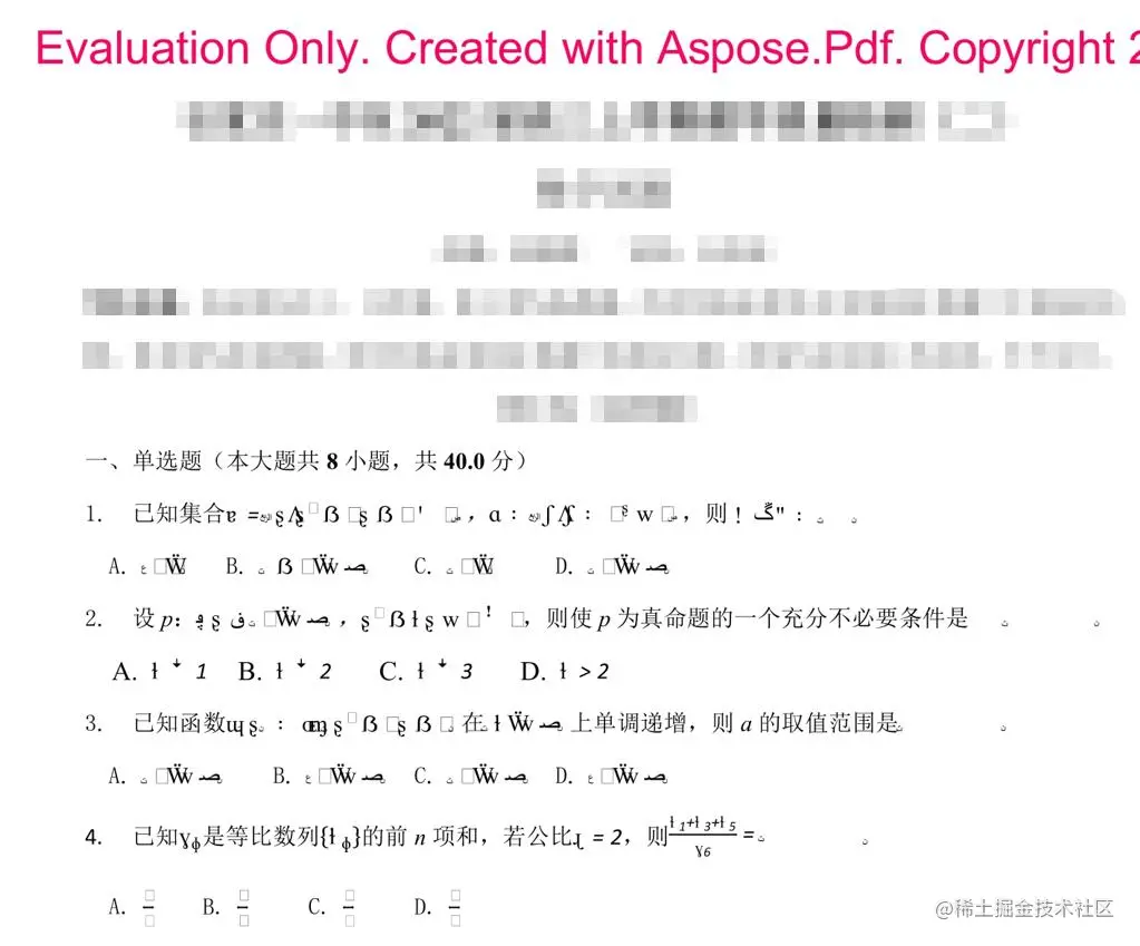这里猜测应当是历史版本的office生成的公式,并且在转换PDF的时候把相关字体写入到PDF中去了,而这些个SDK都没有去读取和解析PDF自带的字体,只是读了个名称,然后再调用操作系统已安装的字体,字体不兼容解析失败导致异常,我目前的手上的工具也无法生成这样PDF来复现这个问题