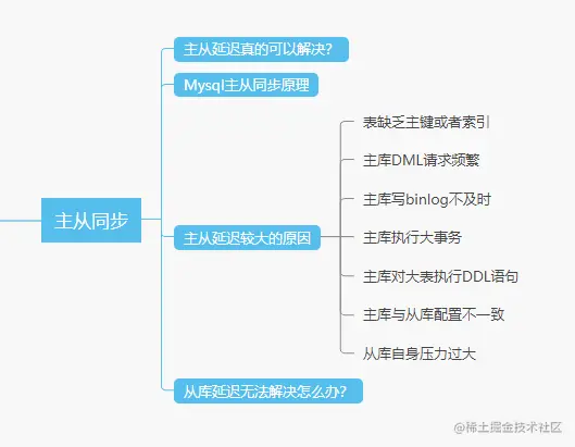 了解了主从同步的原理,那么主从延迟较大的原因有哪些?