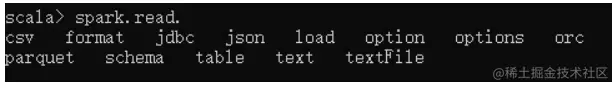 通过spark-shell的tab键补全得到spark.read.的系列方法