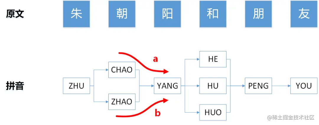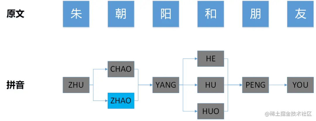 因此我们不依赖算法识别多音字的读音,而是将文本内容的所有读音都列出来匹配一遍,就可以避免避免拼音转换不精准的问题。