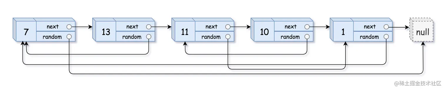 输入:head = [[7,null],[13,0],[11,4],[10,2],[1,0]]