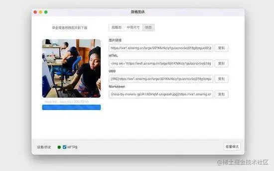 简介:简单好用的新浪微博图床,支持选择/拖拽/粘贴上传图片,并生成图片地址,HTML,UBB和Markdown等格式,支持浏览和删除历史记录。