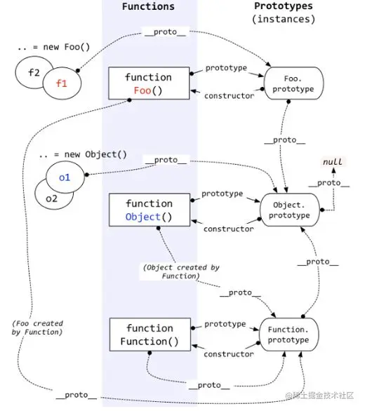 大家可以根据下面这张图片,并结合上面这句话一起理解原型链,这里就不详细描述了。