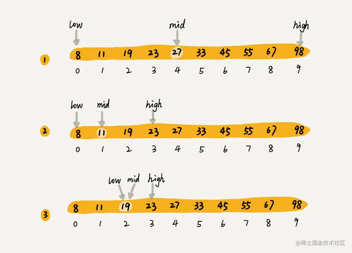 - 适用场景:有序数组查找