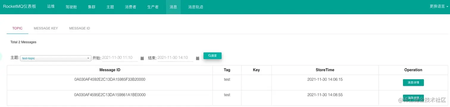 首先启动 RocketMQ(nameserver 和 broker) ,然后启动服务,调用 controller 接口 发送消息,查看接收到的消息内容。