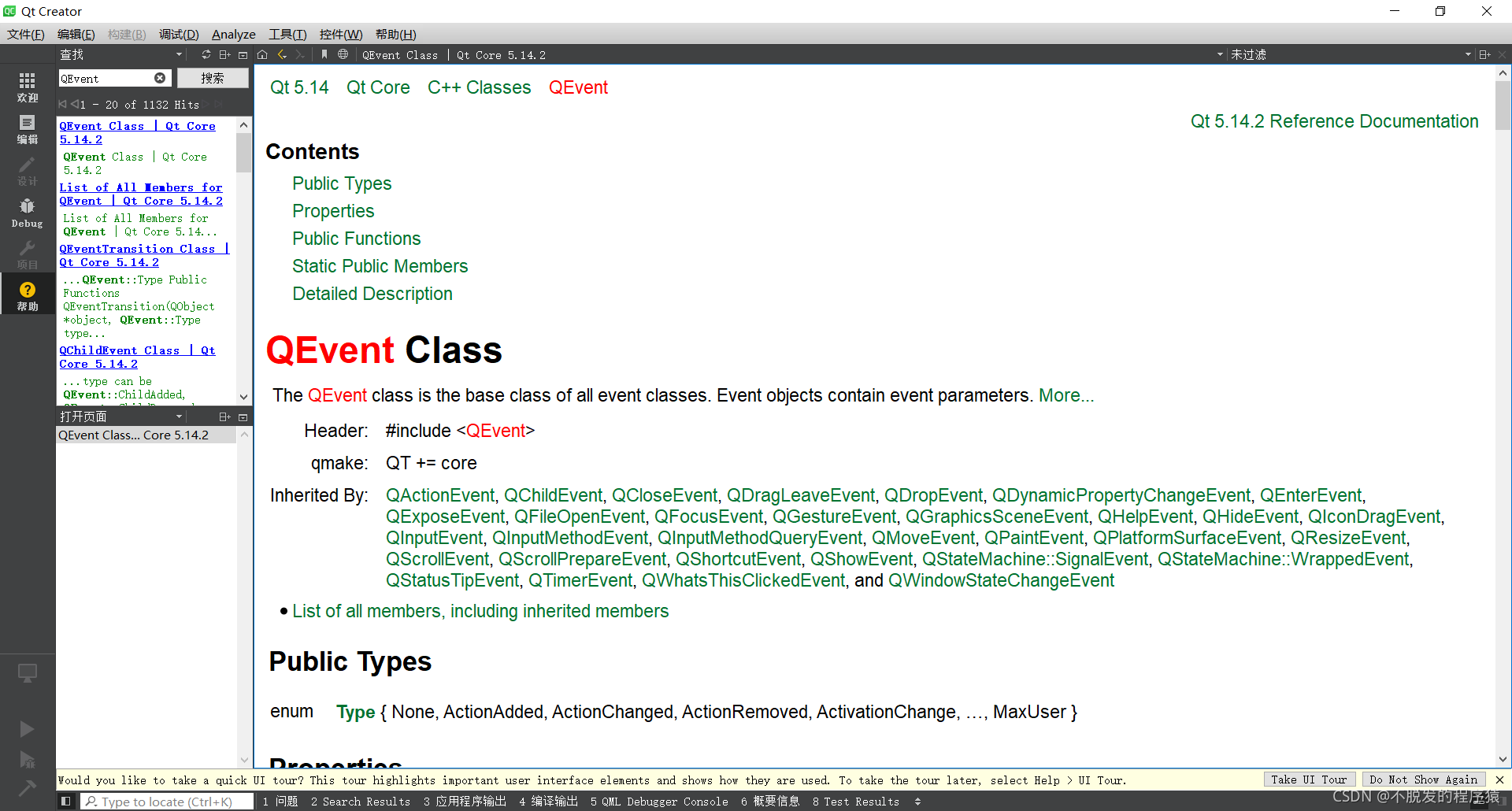 Qt事件的类型有很多,常见的Qt事件如下所示: