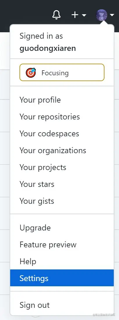 这是因为一般我们push修改到Github,要么是通过密码,要么是通过提前配置好的SSH公钥免密提交。但是作为公开的工作流配置文件,我们显然不想公开自己的密码,而且也无法做到给工作流机器生成公钥,然后自动化的配置到自己的Github账号中。为此,Github贴心的设计了token机制,其实在Github Action出现之前就有token机制,用于给你调用一些Github的开放API使用。如果你没有token要生成一个,步骤如下: