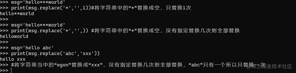 print(msg.replace('*','',)) #将字符串中的“*”替换成空,没有指定替换几次则全部替换