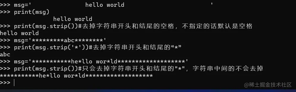print(msg.strip())#去掉字符串开头和结尾的空格,不指定的话默认是空格