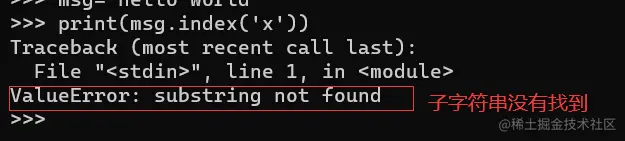 注意:index与find的区别是:index已经知道msg中存在sub,然后进行查找,如果不存在会报错;find是去查找sub,有则返回索引,没有则返回-1,不会报错。