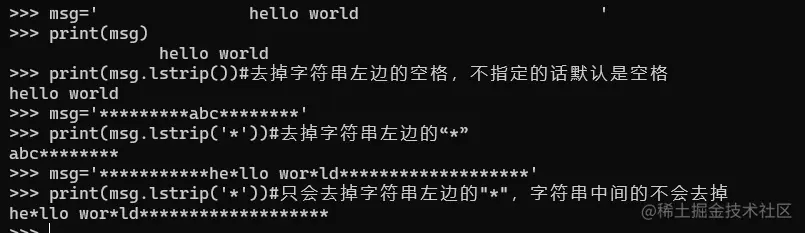 print(msg.lstrip())#去掉字符串左边的空格,不指定的话默认是空格