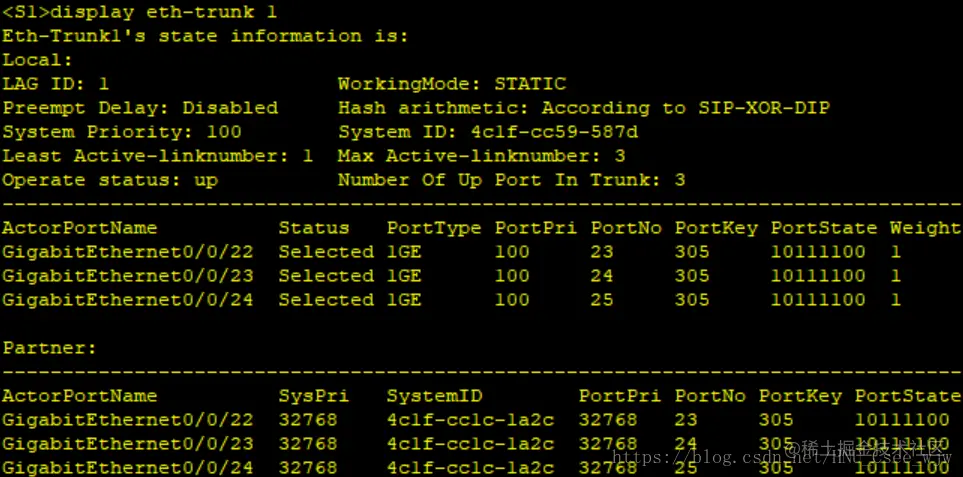 [S1-Eth-Trunk1]trunkport GigabitEthernet 0/0/22 to 0/0/24