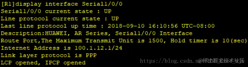 [R2-Serial1/0/0]link-protocol ppp