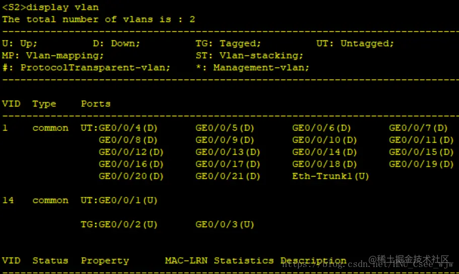 [S2-GigabitEthernet0/0/2]port trunk allow-pass vlan all