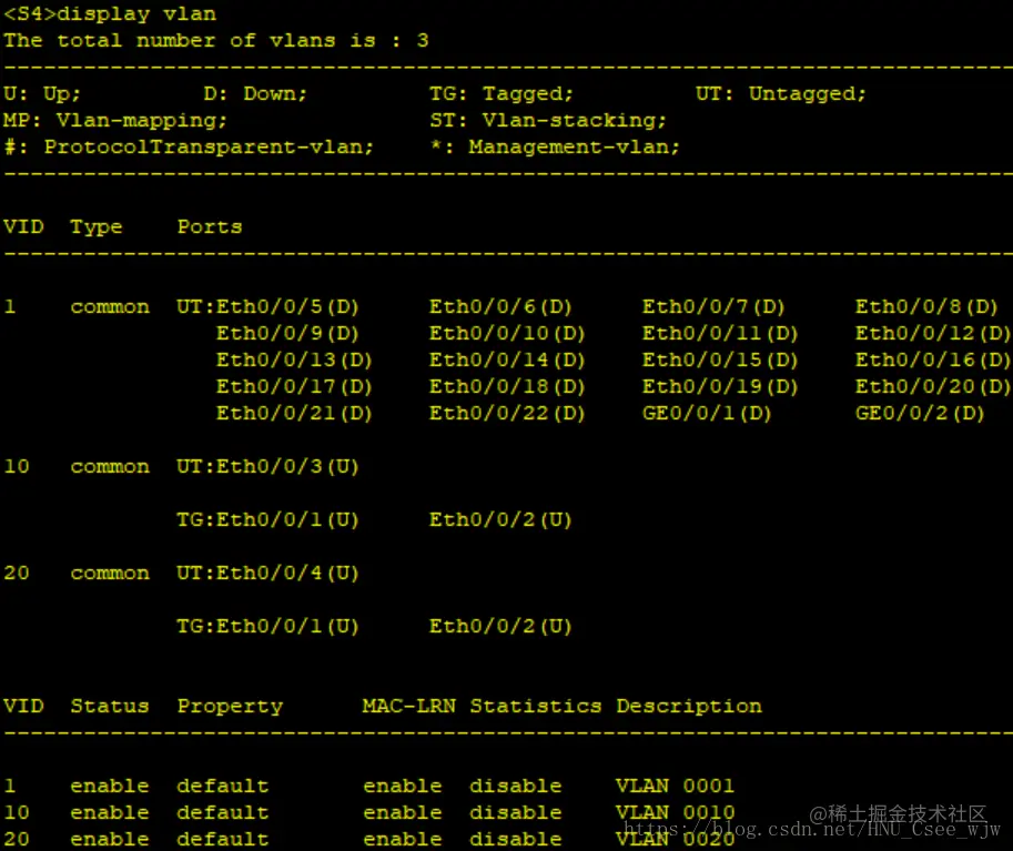 [S3-vlan20]port Ethernet 0/0/4