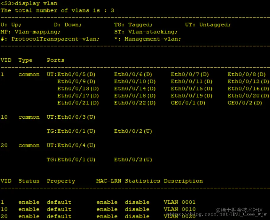[S3-vlan10]port Ethernet 0/0/3