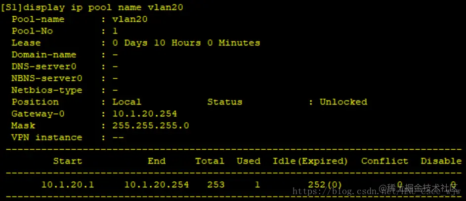 [S1-ip-pool-vlan20]net 10.1.20.0 mask 255.255.255.0