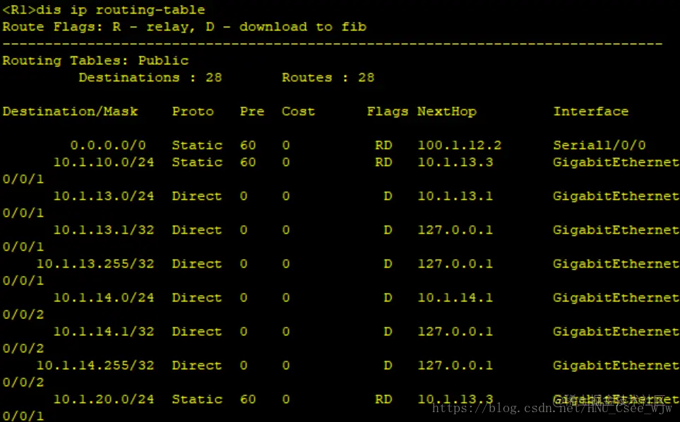 [S1]ip route-static 100.1.12.0 24 10.1.13.1