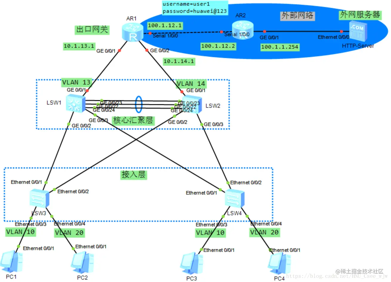 (2)VLAN 10分配网段为10.1.10.0/24,VLAN 20分配10.1.20.0/24网段