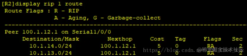 查看RIP配置结果: