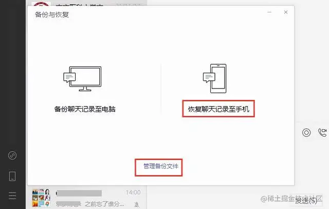 - 步骤三: 在新弹出的窗口中,点击右侧的“恢复聊天记录至手机”选项,并在手机上确认,即可等待完成聊天记录恢复。
