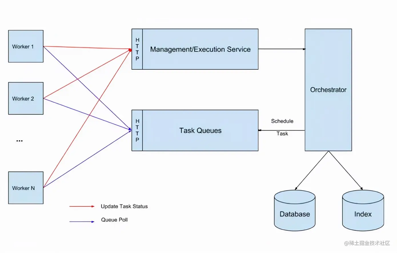 - Worker: 任务执行worker,从TaskQueues中获取任务,通过Execution Service更新任务状态与结果数据;