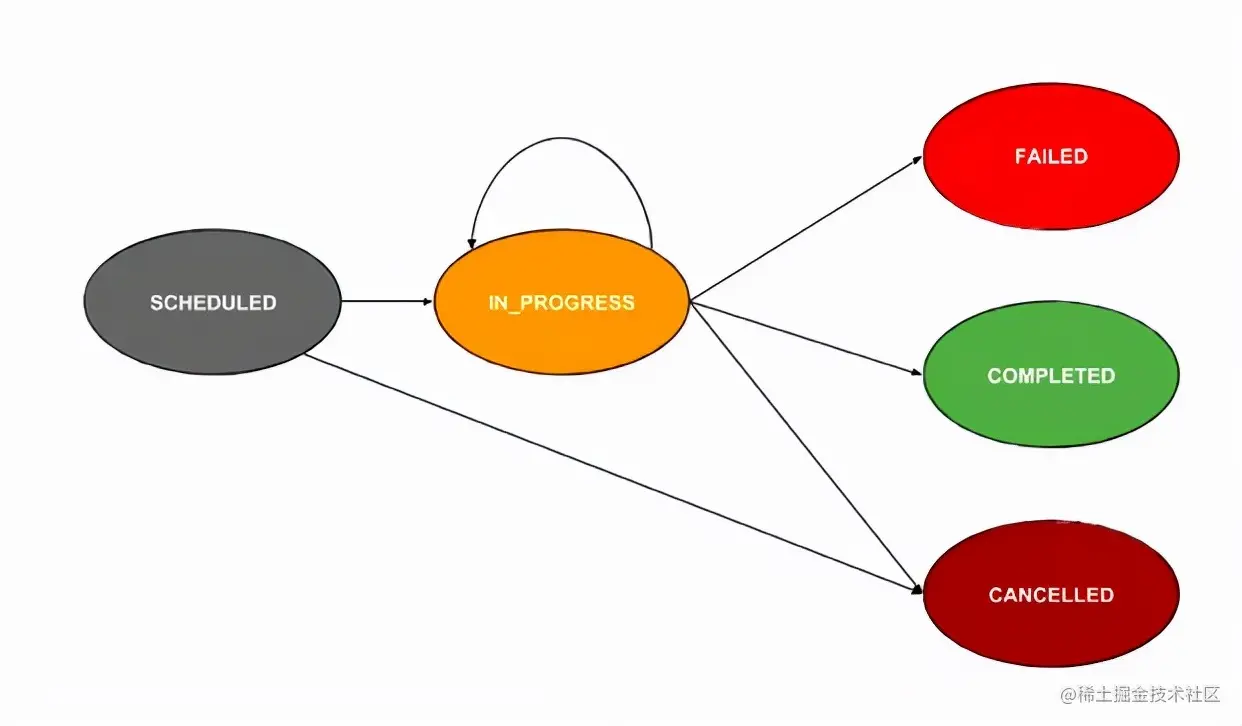 - SCHEDULED:待调度,task放到队列中还没有被poll出来执行时的状态