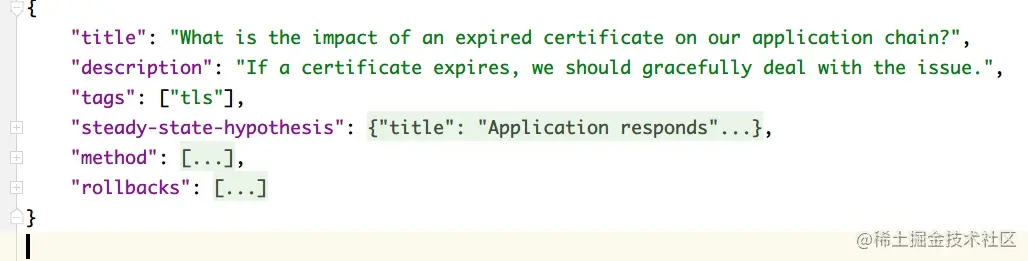 这个个稳态假说由一个或者多个probe以及与其对应的容错范围组成。每次probe都要在我们给定的目标系统中寻找一个属性,并判断该属性值是否在一个合理的容错范围内。