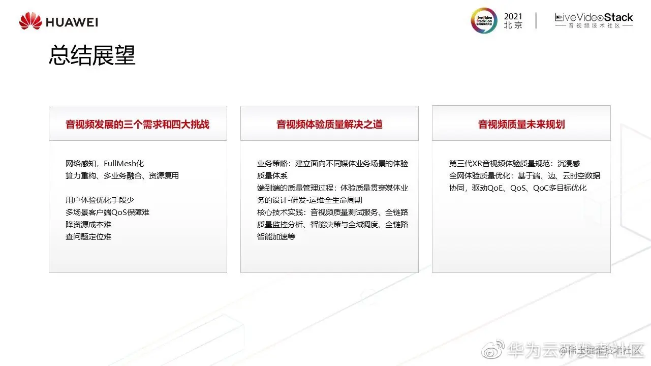 展望未来,当元宇宙时代出现时,怎么定义音视频体验质量规范。基于端、边、云时空数据协同,如何做到多业务、多目标、多客户的综合决策和千人千面的用户体验,这两点都成为未来的方向。