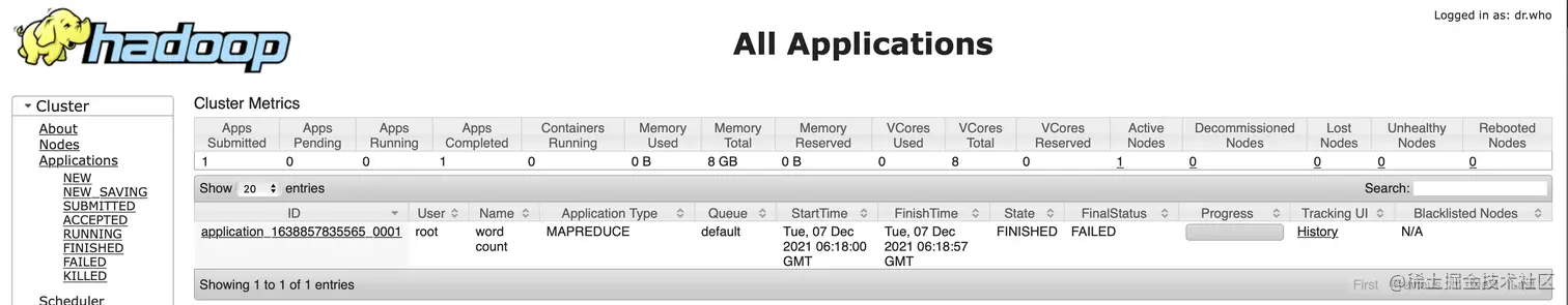 ok!至此,在伪分布式环境计算了第一个 MapReduce 任务。