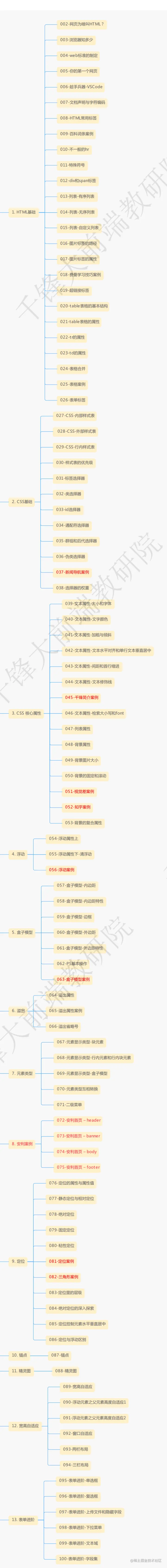 其中包括:HTML基础,CSS基础,CSS核心属性,浮动,盒子模型,溢出,元素类型,安利案例,定位,锚点,精灵图,宽高自适应,表单进阶。