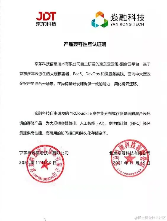 焱融科技&京东云产品兼容性认证