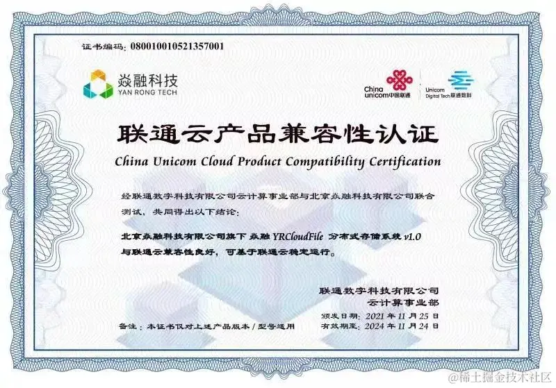 焱融科技&联通云产品兼容性认证