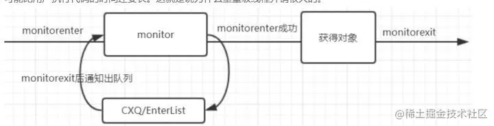 如果获取失败则表示monitor对象被其他线程获取从而阻塞当前线程