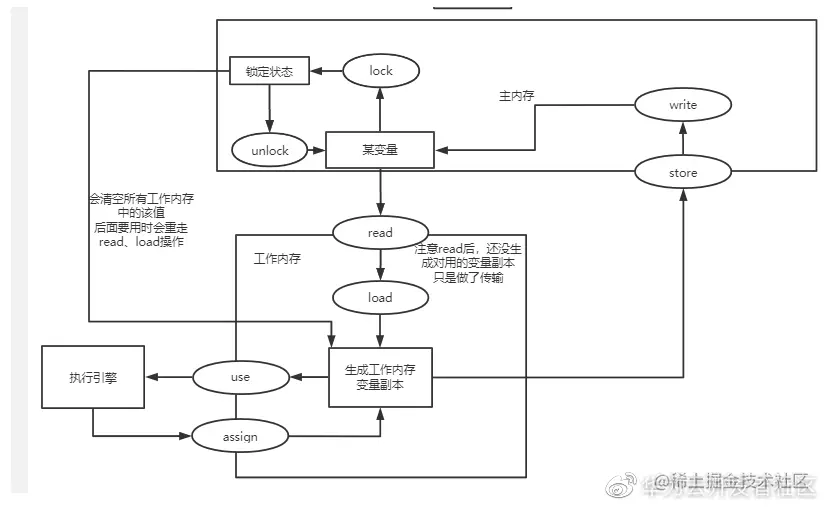 工作内存中使用某个变量副本时,必须先经历过assign或者load操作。 不可read后马上就use