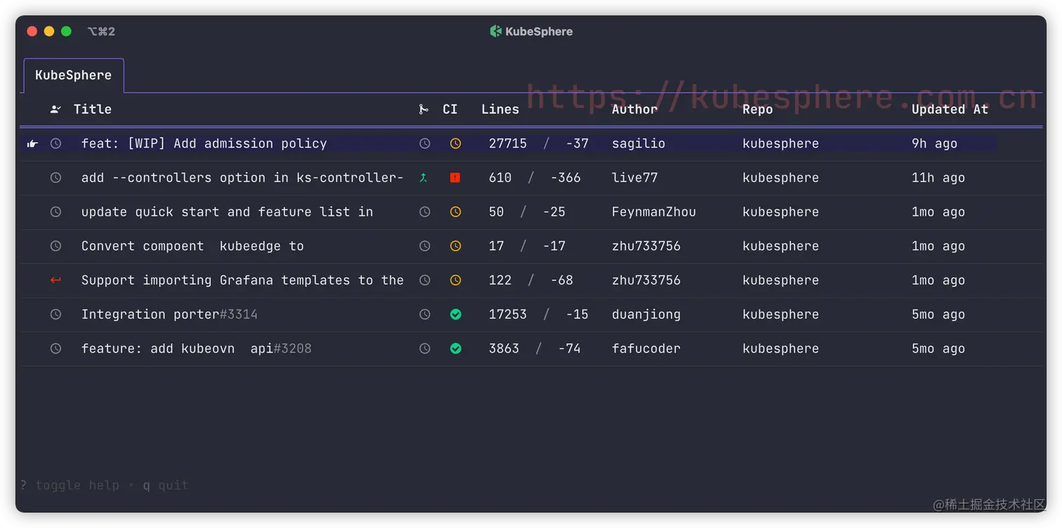 gh-prs 是 GitHub CLI 工具 gh 的扩展,用于在命令行界面通过 UI 展示 PR 的信息。
