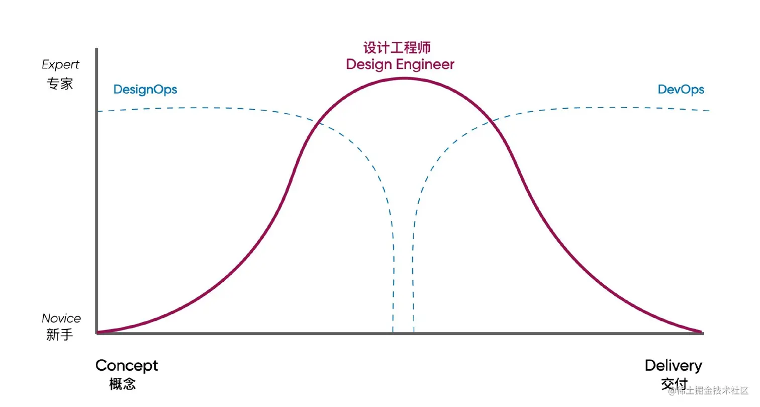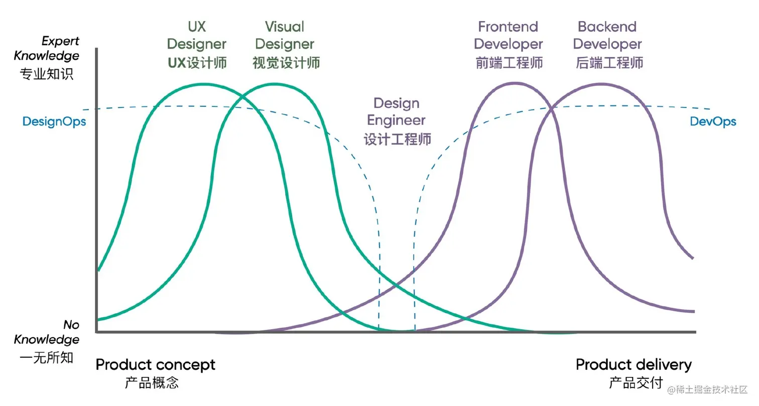 大家常常建议,将 DesignOps 和 DevOps 交叉起来,并确保它们之间流畅的进行协作。但遗憾的是,扩展知识的边界用处不大,因为不同学科的语言之间并没有相互转换,叙事方式也没有改变。这条 鸿沟(gap)其实意味着我们缺失了一个职位。
