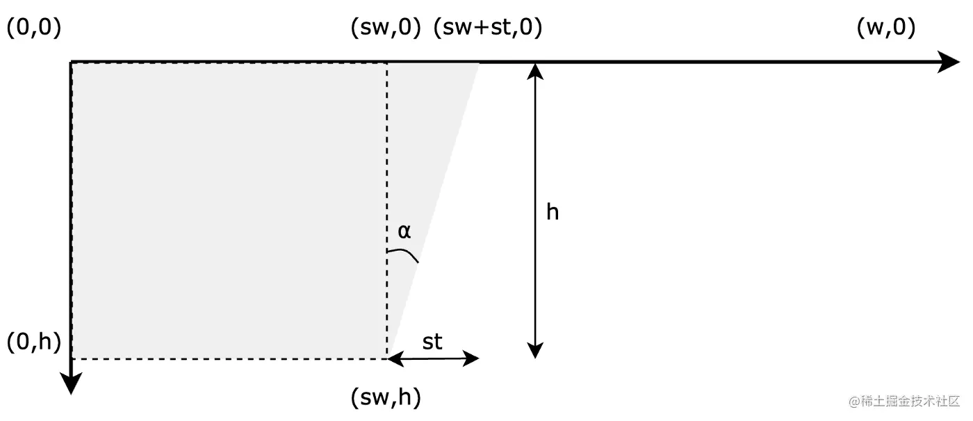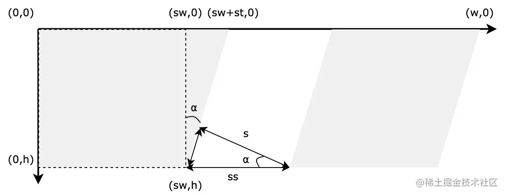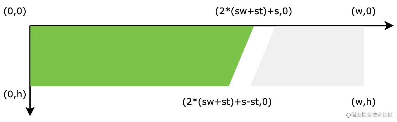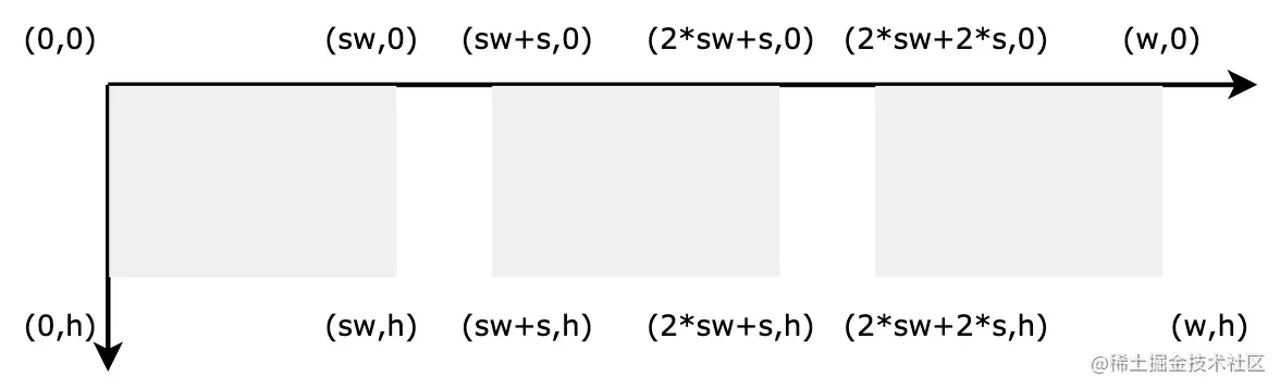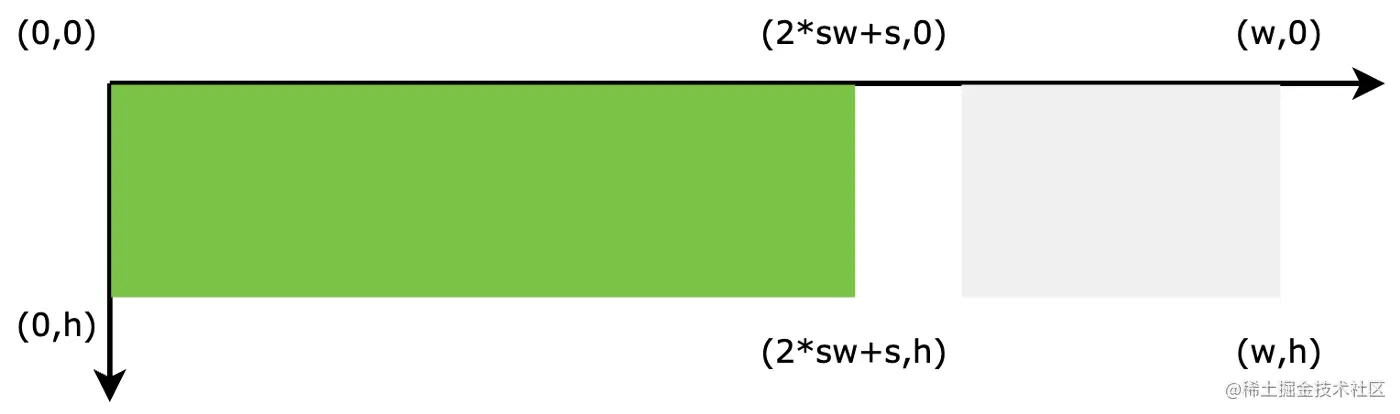 从左坐标开始对于每个线段,X 坐标位于线段宽度sw加上间距处s,按上述关系可以得到: