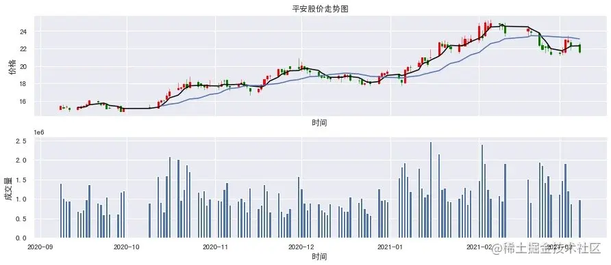 ax1.set_title("平安股价走势图")