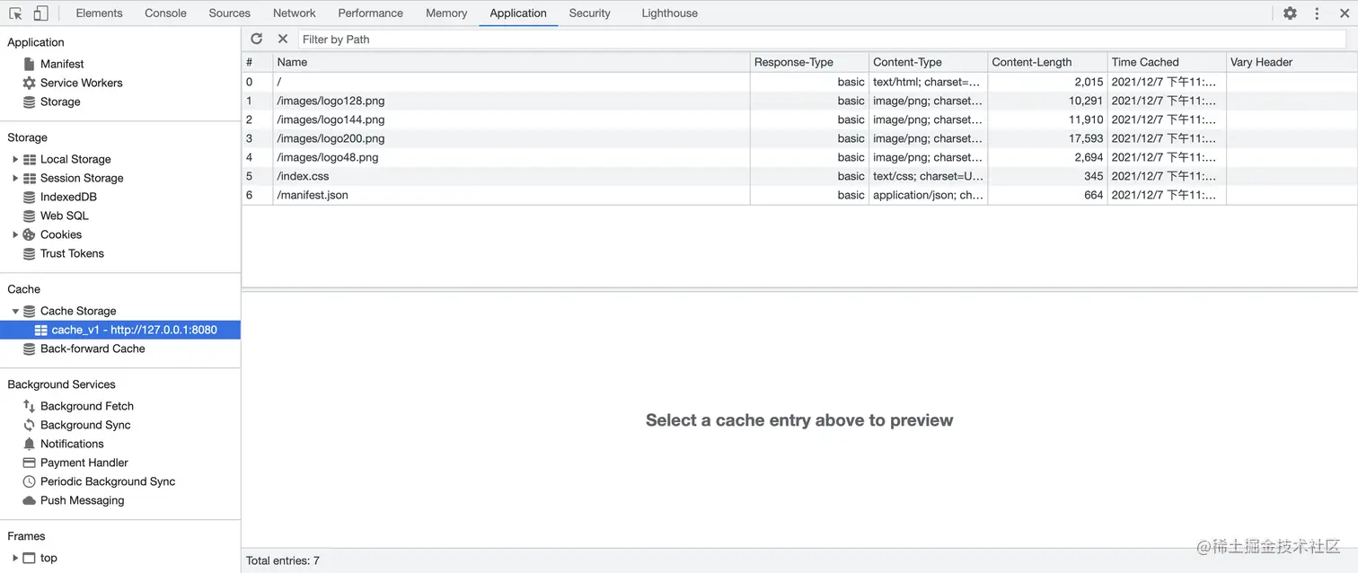 打开浏览器的开发者工具 我们可以看到我们想要缓存的文件都在里面了