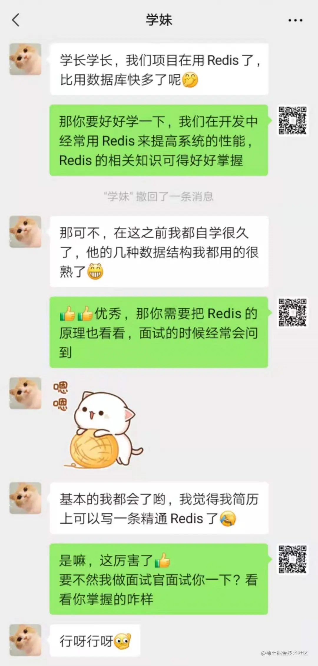 有天晚上,学妹在微信问我关于Redis的问题,还让我做面试官来面试她。