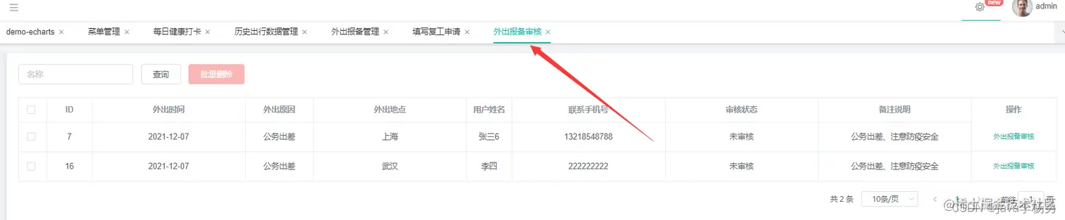 外出请假审核: