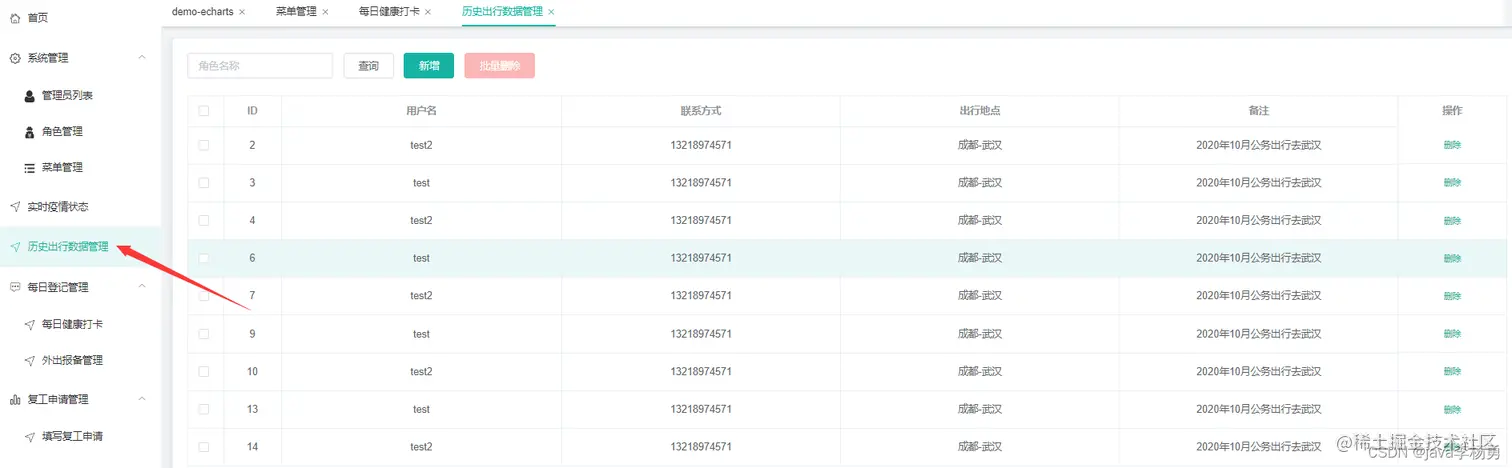 | 6 | grjc | varchar | 255 | 0 | Y | N | | 是否和感染人员接触 |