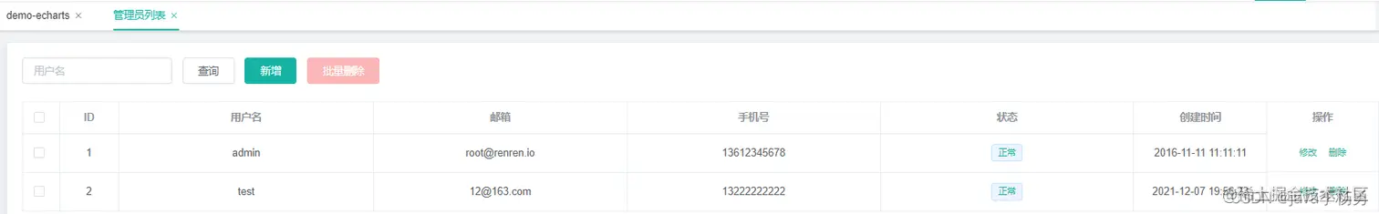 | 3 | phone | varchar | 255 | 0 | Y | N | | 手机号 |